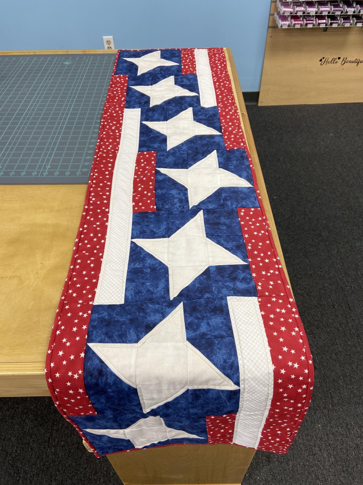 Join us for a fun and creative one-day class where you’ll make a stunning patriotic table runner, perfect for your 4th of July celebrations. The finished runner measures 15" x 63", making it a beautiful addition to your holiday table.