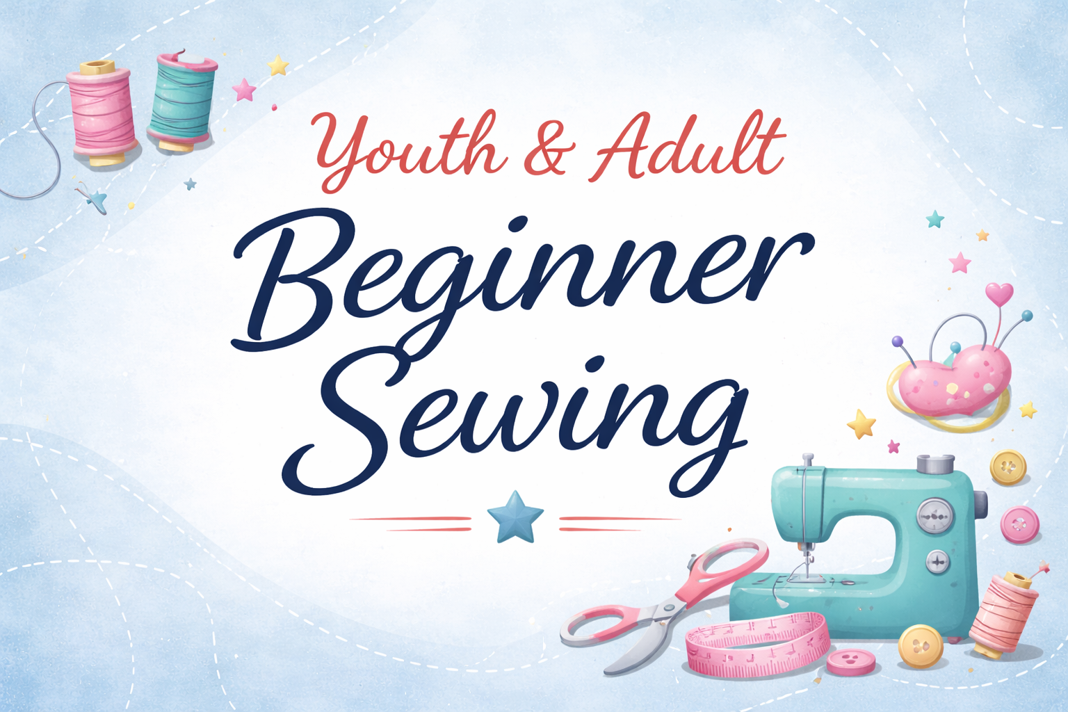 This hands-on class is created for youth and adult beginners who are ready to learn the basics of sewing in a relaxed and supportive environment. Participants will learn sewing machine basics and safety, fabric cutting techniques, sewing straight seams, maintaining accurate seam allowances, proper pressing methods, and problem-solving for common beginner challenges.