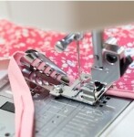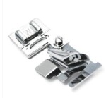 Ideal for easily finishing a creation by adding bias, this foot is also very useful for reversible garments, edge finishings or the creation of loops and ties. The spiral cone wraps the pre-pleated bias tape and the foot wraps it around the edge of the sewn fabric. Folded bias of 1.5 cm.